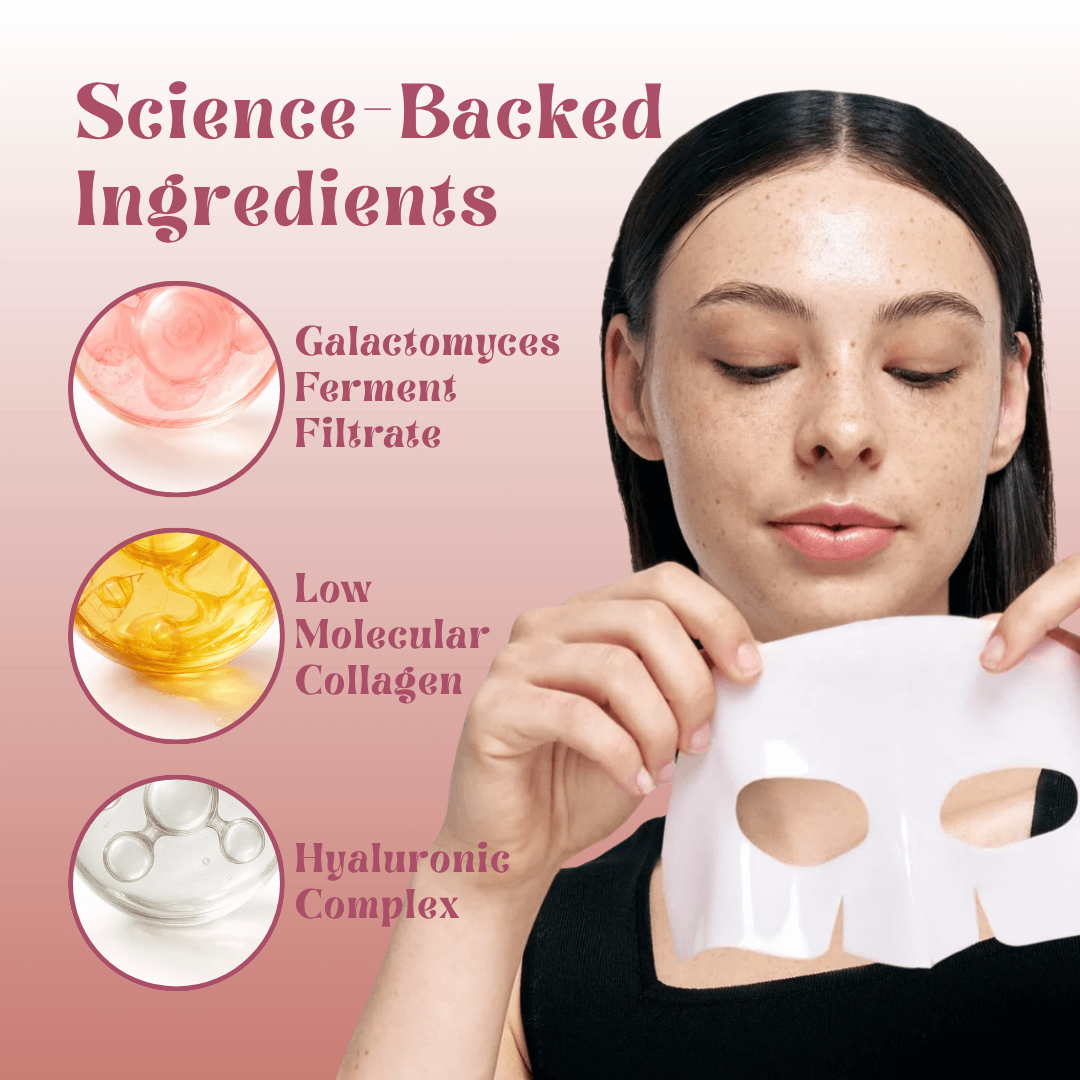 Everything. We use real collagen, a two-piece custom-fit design, and a low-molecular blend of peptides and hydration complexes for visible results — fast. No stickiness, no gimmicks. Just real glow.